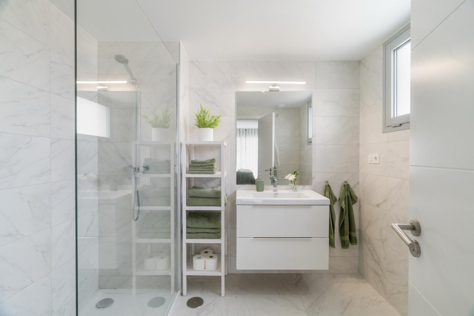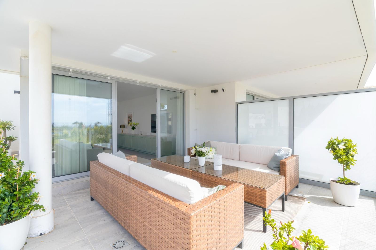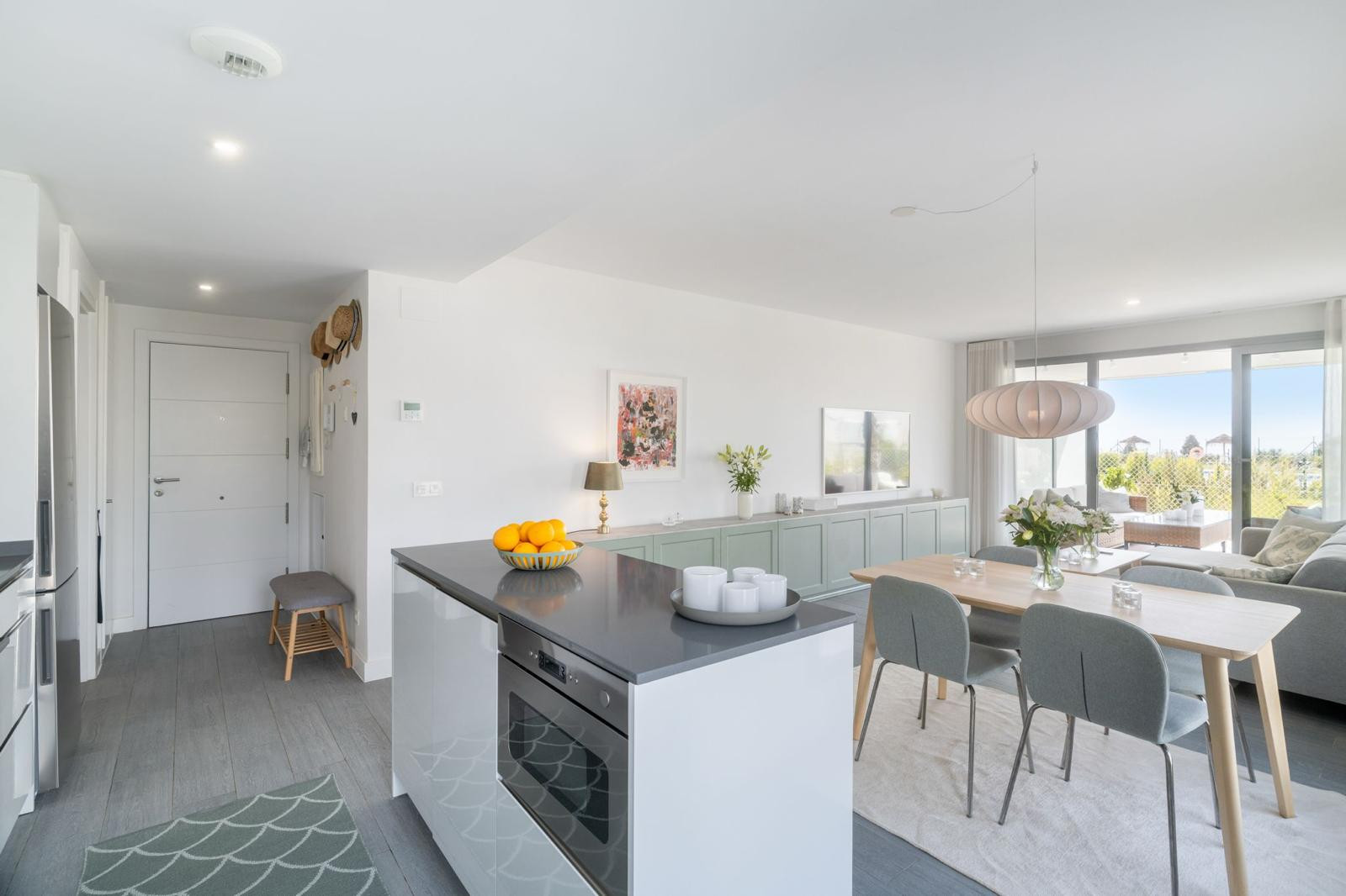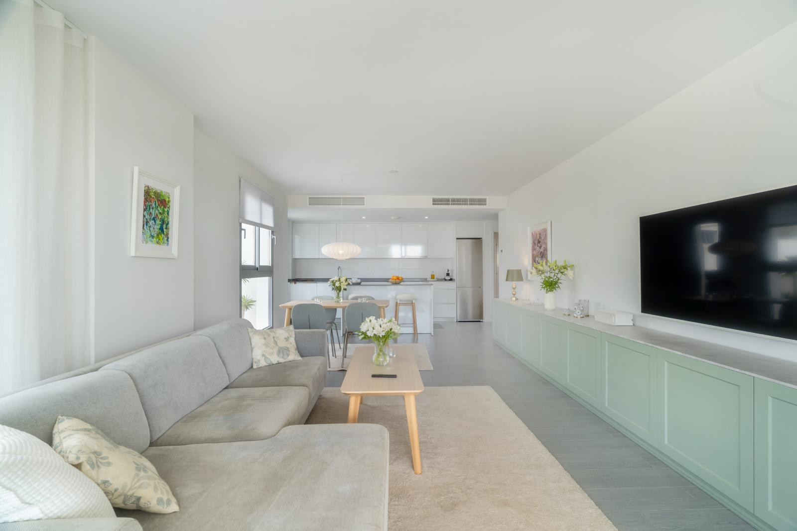 The fully equipped kitchen flows seamlessly into the living area, creating a welcoming and social space ideal for family life or entertaining guests. The generous terrace features both covered and open areas with different orientations, allowing you to enjoy the sun throughout the day and warm evenings overlooking the pool area and the Mediterranean Sea.